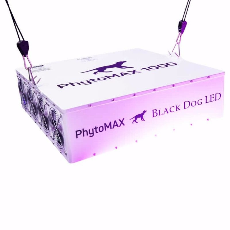 At 1015 actual watts, the PhytoMAX 1000 is the most powerful LED grow light available worldwide. With PhytoMAX we have delivered the most powerful and reliable, truly full-spectrum (365-750nm, UV to NIR) LED plant grow lights! The new custom housing is designed to better distribute light and dissipate heat, and the PhytoMAX 1000 uses the highest-quality, latest-technology, top-bin LEDs to deliver Black Dog LED's proprietary full-cycle Phyto-Genesis Spectrum™.