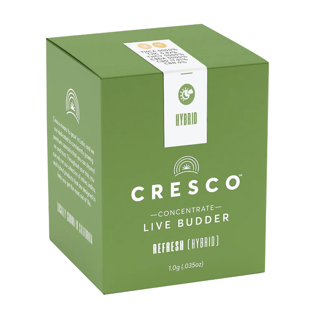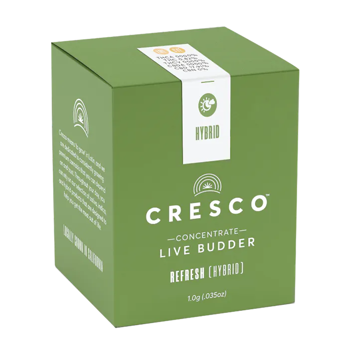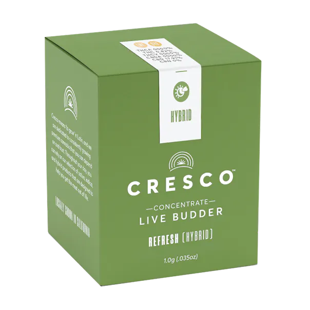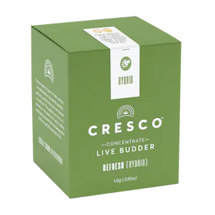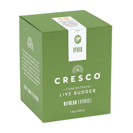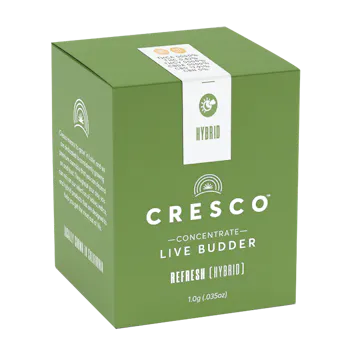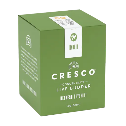 Cresco Refresh Live Resin Budder is available in 500mg, 1g, and 2g. A smooth and creamy concentrate. Derived from fresh frozen cannabis to ensure maximum cannabinoid and terpene retention, our suite of live concentrates is aromatic and potent.