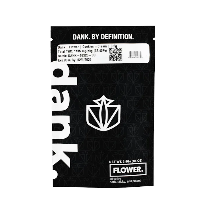 Cookies And Cream by DANK: Elevate your experience with this luscious hybrid, born from the cross of Starfighter and a unique GSC phenotype. Known for its sweet, dessert-like flavor that melds creamy overtones with a hint of earthiness, Cookies and Cream offers a soothing high that relaxes the body while uplifting the mind. Ideal for those seeking relief from stress, anxiety, and depression, its high THC content ensures a potent escape into relaxation—perfect for a blissful end to your day or a calming respite anytime.