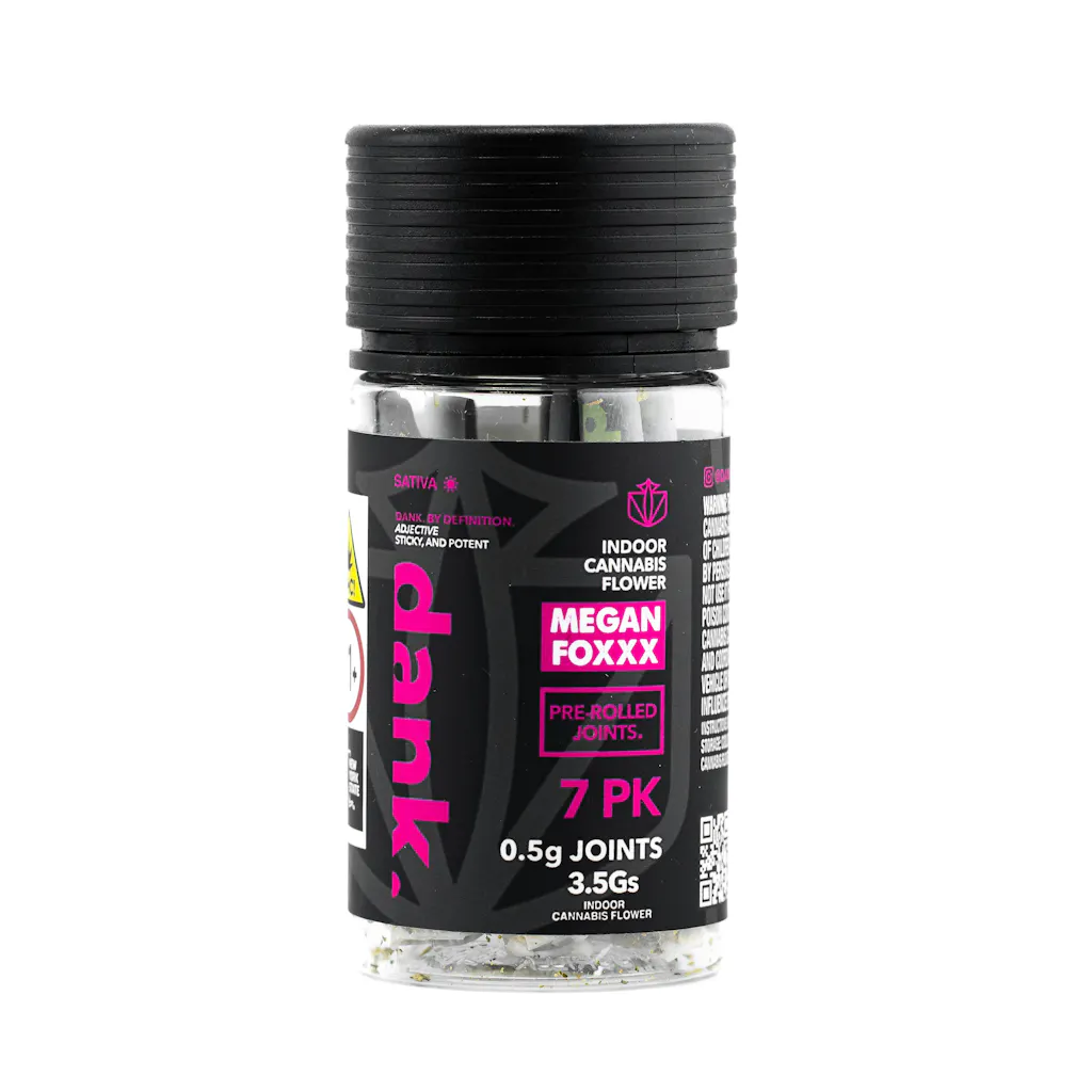 <p></p><p>Brace yourself for a blast of euphoria with our DANK Pre-Roll 7 Pack featuring Megan Foxxx. Megan Foxxx stands out as a charismatic and versatile cannabis strain, captivating users with its potent effects. Its alluring skunky, dank aroma paired with its potential therapeutic benefits makes it a great strain for cannabis users at any level. Whether seeking relaxation, creativity, or simply a moment of bliss, this strain is sure to leave a lasting impression.</p>