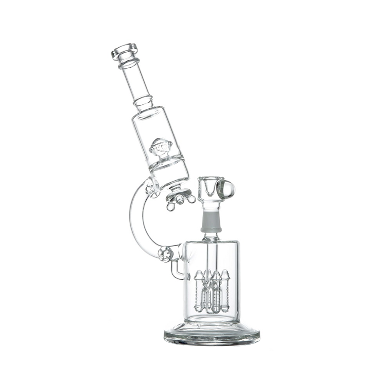 This microscope water pipe is perfect for any connoisseur of water pipes. Not only is it highly functional, but it has great design as well. It features a 4" wide base, which is positioned directly under the quad-rocket diffused perc. These rocket percs generate amazing filtration of your smoke, thanks to all of its slits. After filtering through the quadrocket perc, smoke passes through the neck of the microscope to a domed circ perc. This second round of filtration creates an extremely smooth hit. The circ perc finally directs the smoke through flared mouthpiece. Adhering to the standards of scientific glass, this water pipe is made with clear glass and boasts amazing filtration.