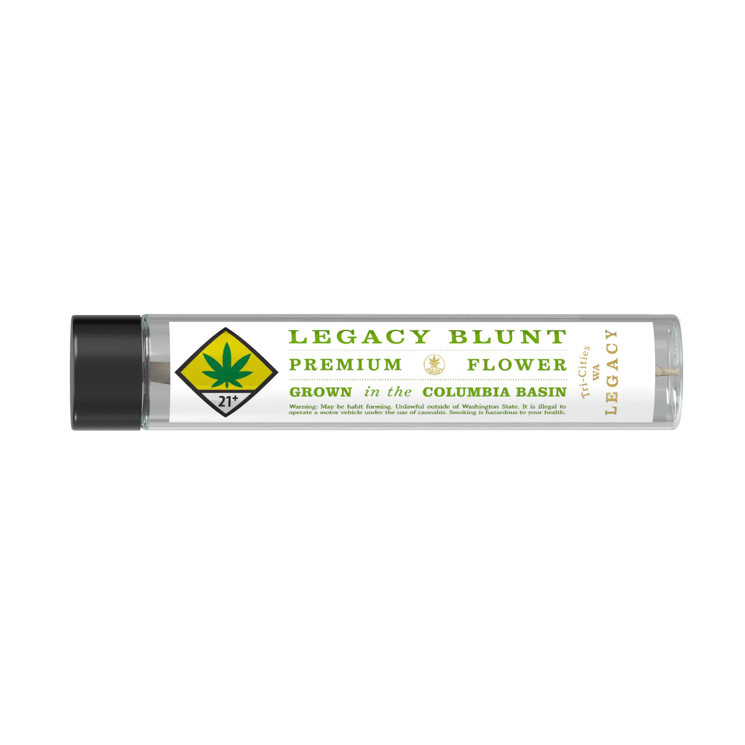 100% Premium Indoor Flower - Hemp Wrap Blunt - LEGACY - Grown In The Columbia Basin- Proudly Produced In Tri Cites WA - Est. 2015 - Handcrafted - Artisanal Cannabis - Sustainable Methods - Single Source - Smoke Clean; Hayaa Green