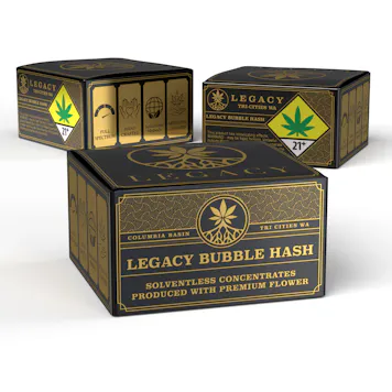 Solventless Ice Water Bubble Hash - LEGACY - Grown In The Columbia Basin- Proudly Produced In Tri Cites WA - Est. 2015 - Handcrafted - Artisanal Cannabis - Sustainable Methods - Single Source - Smoke Clean; Hayaa Green