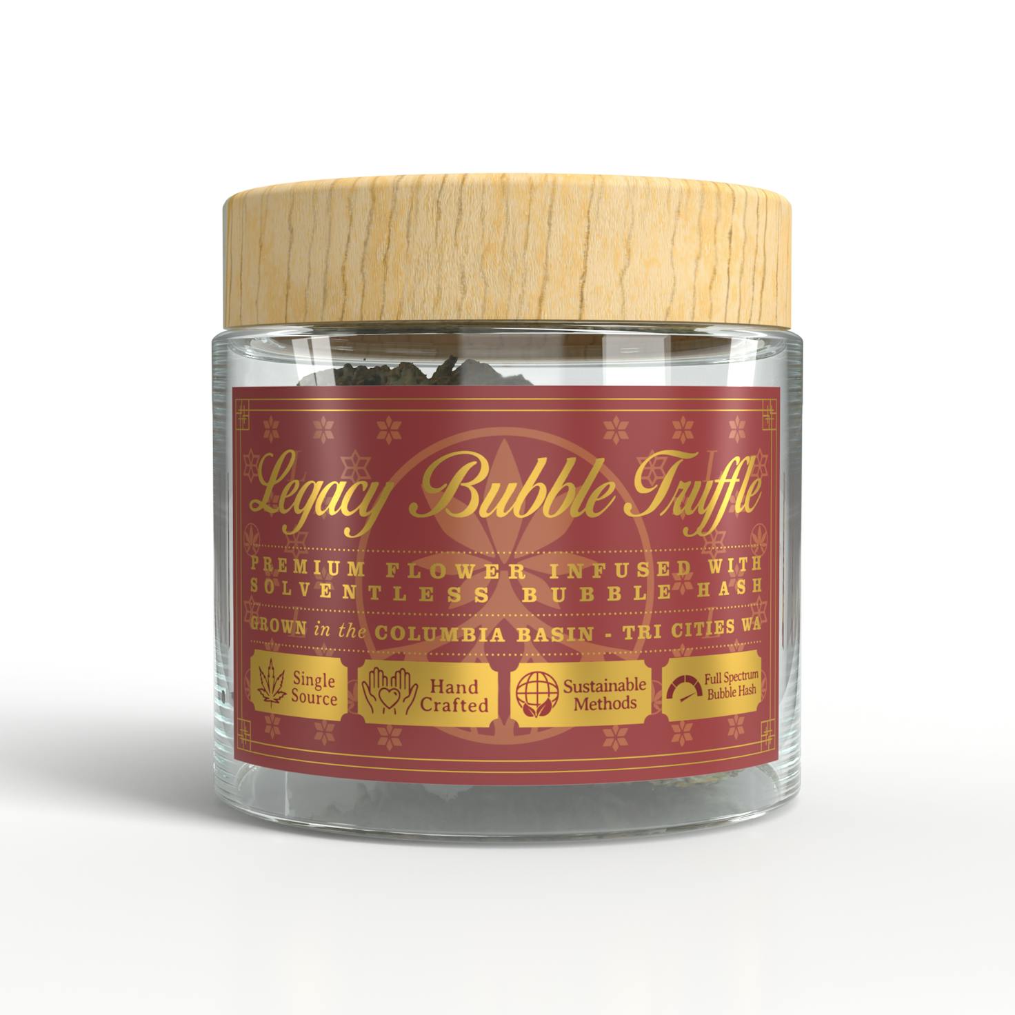 Legacy Bubble Truffle -Premium Indoor Flower - Coated With Solventless Bubble Hash - LEGACY - Grown In The Columbia Basin- Proudly Produced In Tri Cites WA - Est. 2015 - Handcrafted - Artisanal Cannabis - Sustainable Methods - Single Source - Smoke Clean; Hayaa Green