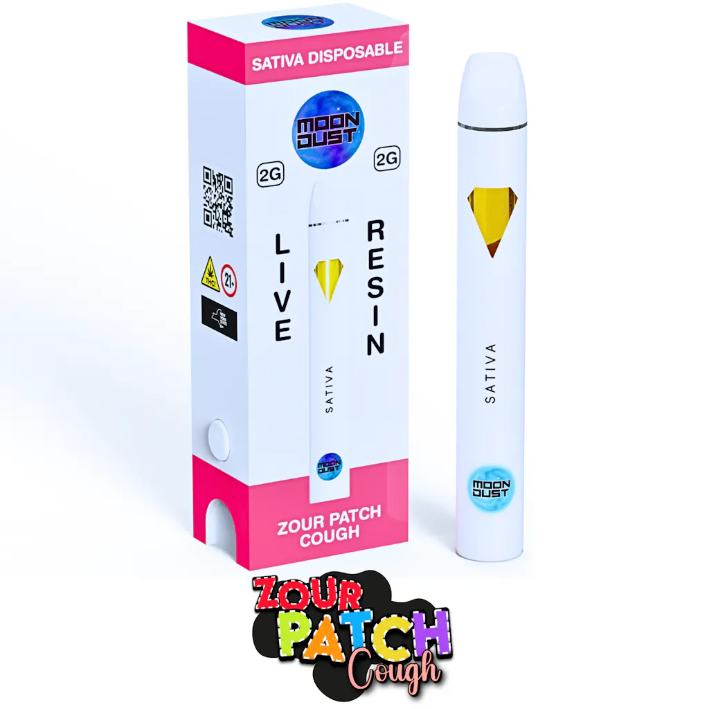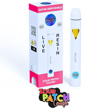 Indulge in the ultimate vaping experience with Moon Dust’s 2g Zour Patch Cough Sativa Live Resin Vape—a tangy, electrifying ride powered by premium ingredients and unmatched flavor.