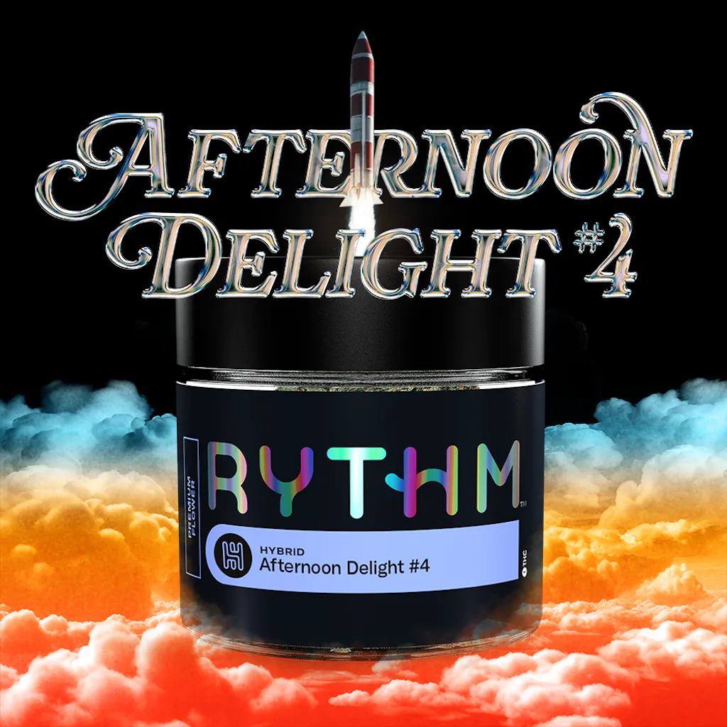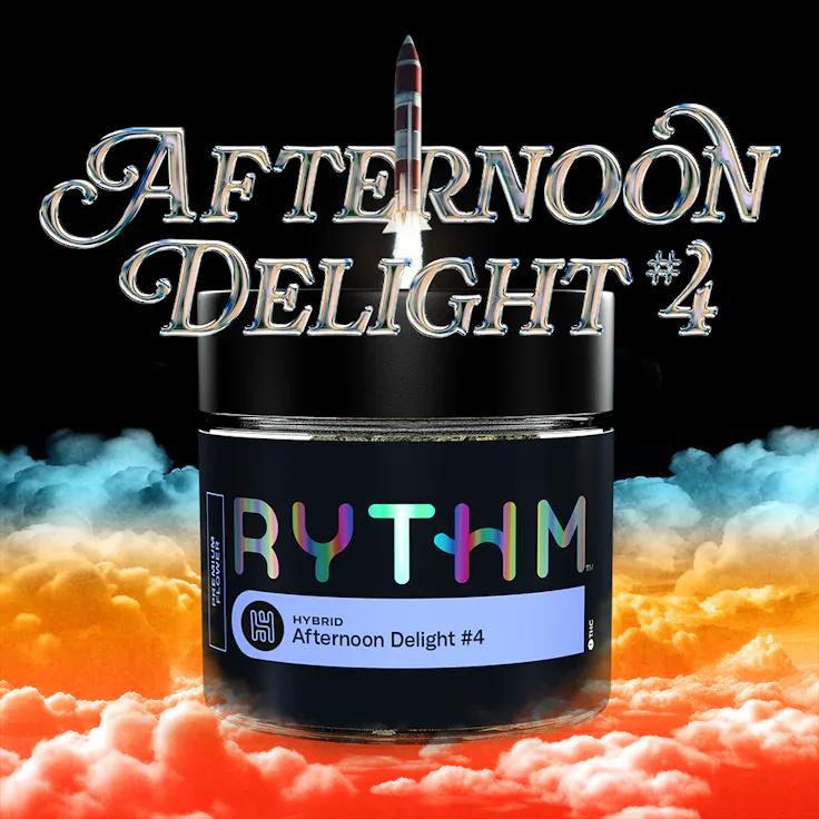 Afternoon Delight #4 [orig: GMO x Trophy Wife], a RYTHM Icon Strain, is a hybrid with sharp diesel aroma, earthy depth, and savory funk throughout.