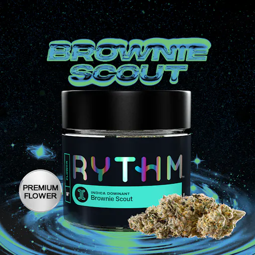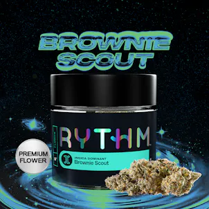 Brownie Scout, a GTI Original and a RYTHM Icon Strain, is a decadent indica with dense chocolatey richness, nutty spice, and thick layers of earthy sweetness.