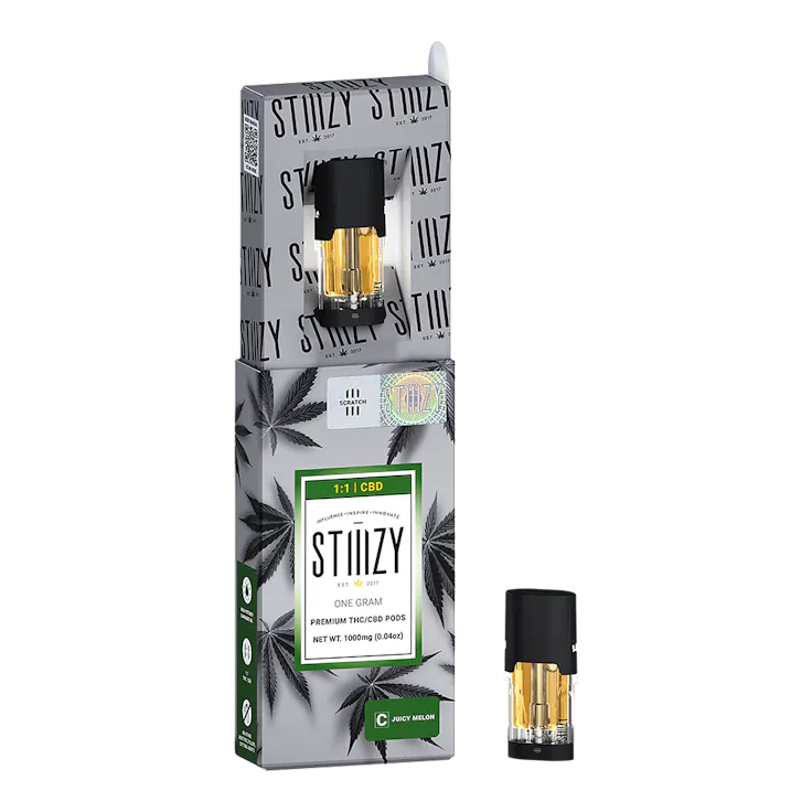 DESCRIPTION: A 1:1 pod that offers an equal ratio of CBD and THC infused with fresh Juicy Melon flavor.