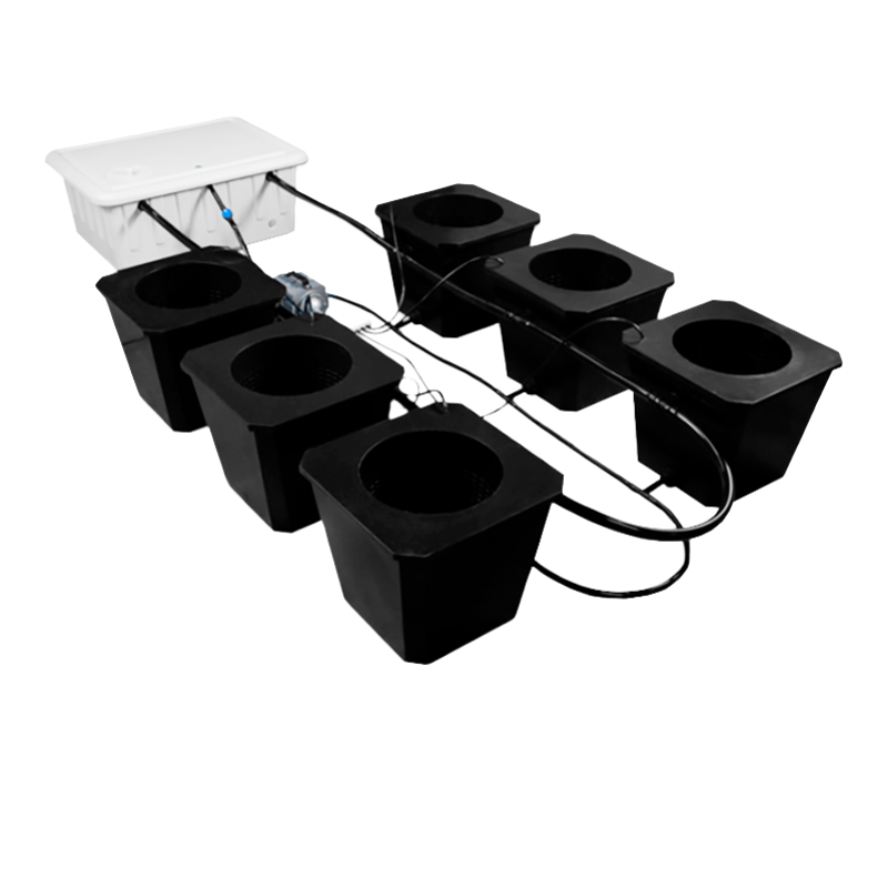 Typical bubble buckets designs have constant issues with pH and TDS pockets creating potentially perilous micro environments in each bucket. This is due to a lack of circulation throughout the system as a whole. The Bubble Flow Buckets all have the exact same readings due to the addition of the re-circulating ebb n’ flow/up-welling feature. Bubble Flow Buckets therefore have consistent pH and TDS readings and even nutrient distribution throughout the entire system.