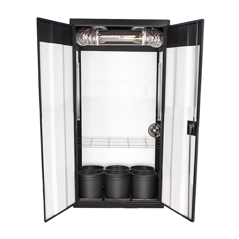 Dual custom carbon filters and locking doors mean your grow will be safe from pesky aromas and prying eyes. The SuperFlower stands at 36” wide, 24”d and 72” tall.