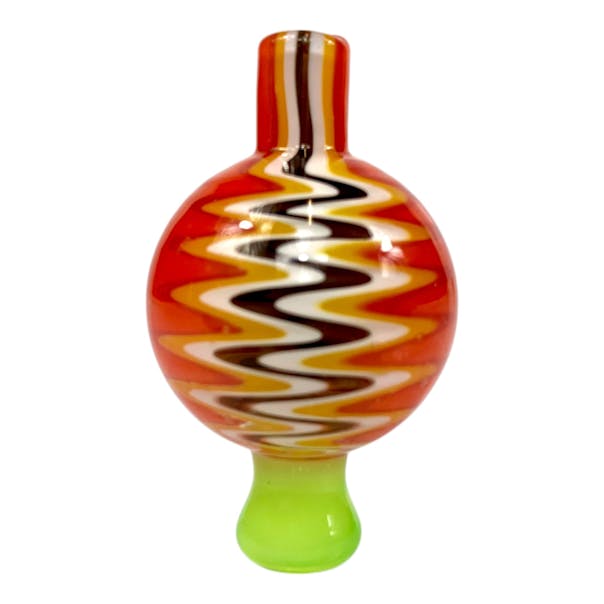 Directional Carb Cap – Red Enhance your dabbing experience with this vibrant red directional carb cap! Designed for optimal airflow control, this hand-blown glass carb cap features a striking zigzag pattern in bold red, yellow, white, and black, adding...