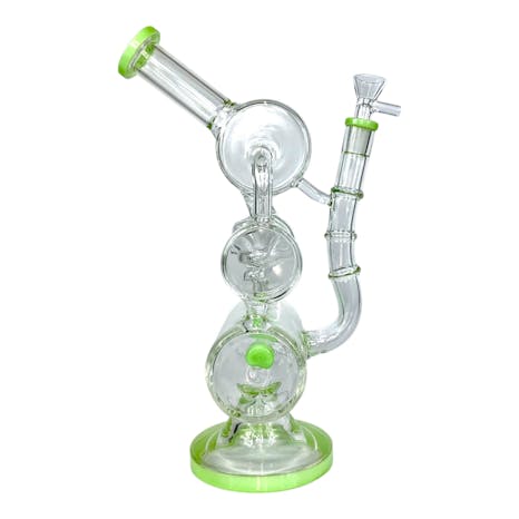 Phoenix Recycler Bong 28cm Green Designed for smooth, powerful hits, this 28cm recycler bong features vibrant green accents on the base, mouthpiece, joint, and inline perc. The unique recycler system utilises dual uptakes and a spiral return to continu...