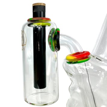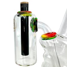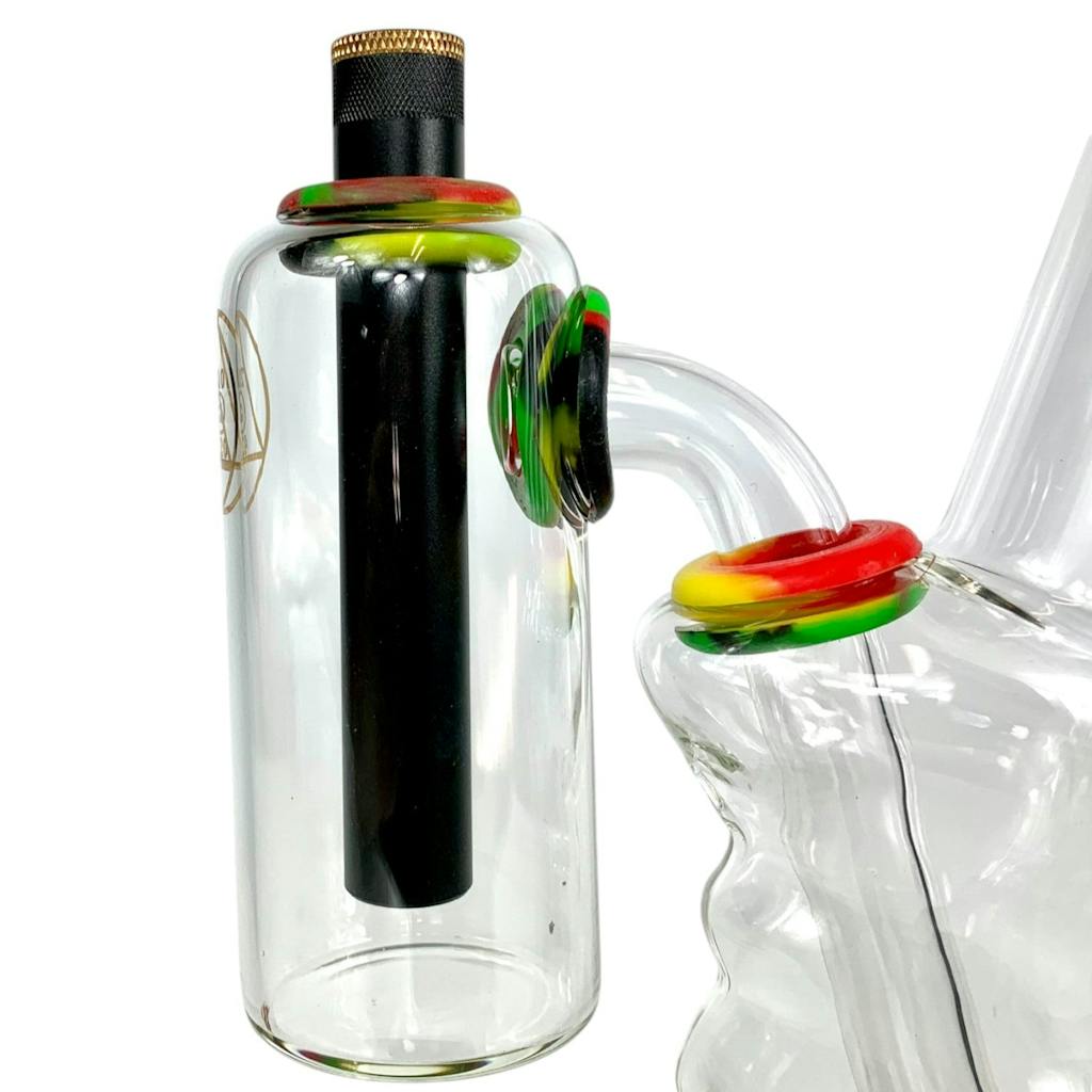 Rasta Ash Catcher Double Chamber 710@420 ( suits gripper style ) Enhance your smoking experience with the Rasta Double Chamber Ash Catcher from 710@420, designed to pair perfectly with gripper-style bongs. Featuring bold red, yellow, and green swirl gr...