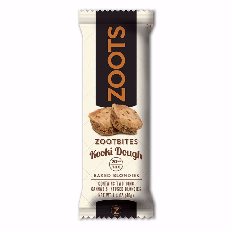 ZootBites Kooki Dough Blondies come in packs of two (20mg THC total per package). Each blondie is individually sealed in nitrogen-flushed packaging for maximum freshness.