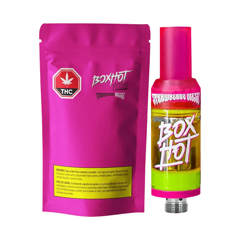 BOXHOT PRESENTS: Strawberry Diesel, a 1.2g 510 vape with a colossal 1000 mg of THC and some of the purest cannabis distillate available on the market. This well-balanced hybrid takes you to the clouds with delightful strawberry flavours complemented by robust notes of gas. All BOXHOT vapes are made with exclusive, oversized hardware, making them optimal for big, full hits. Best of all, BOXHOT vapes are produced using industry-leading CO2 extraction and refining processes and feature a premium blend of expertly infused premium terpenes.
