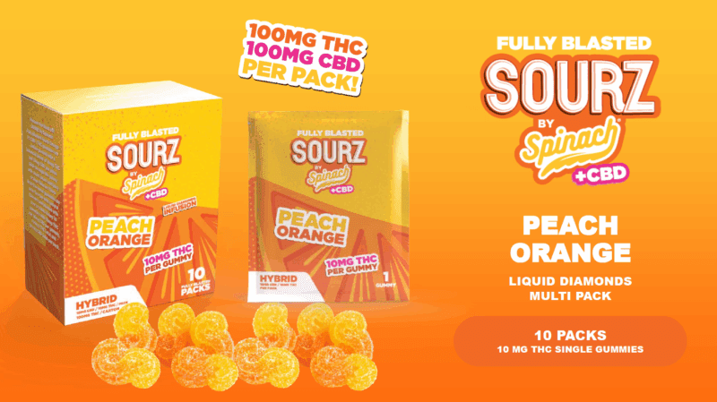 SOURZ by Spinach - Multipack of 10, Fully Blasted Peach Orange 1:1 THC CBD 1 x 10mg Soft Chews