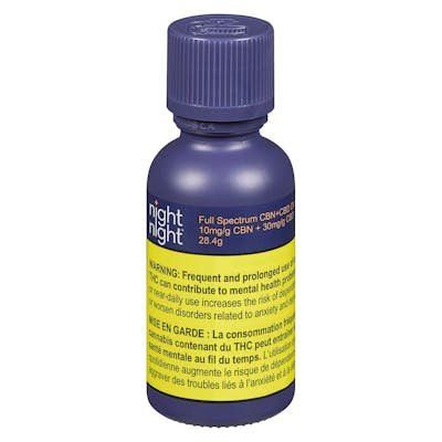 NightNight Full Spectrum CBN+CBD Oil contains 10mg/g of CBN, 30mg/g of CBD, and no THC, creating a new way to experience the synergistic effects of CBN and CBD in a familiar format. NightNight’s CBN+CBD formulation is combined with pharmaceutical-grade MCT and terpenes, resulting in a full spectrum functional oil ideal for nighttime use. All NightNight's CBN products are enhanced with CBD and other natural ingredients to create consumer-focused products of unparalleled quality and utility. NightNight products are developed and manufactured by Purileaf in Niagara Falls, Ontario. Each lot is tested by accredited laboratory to ensure quality and consistency.