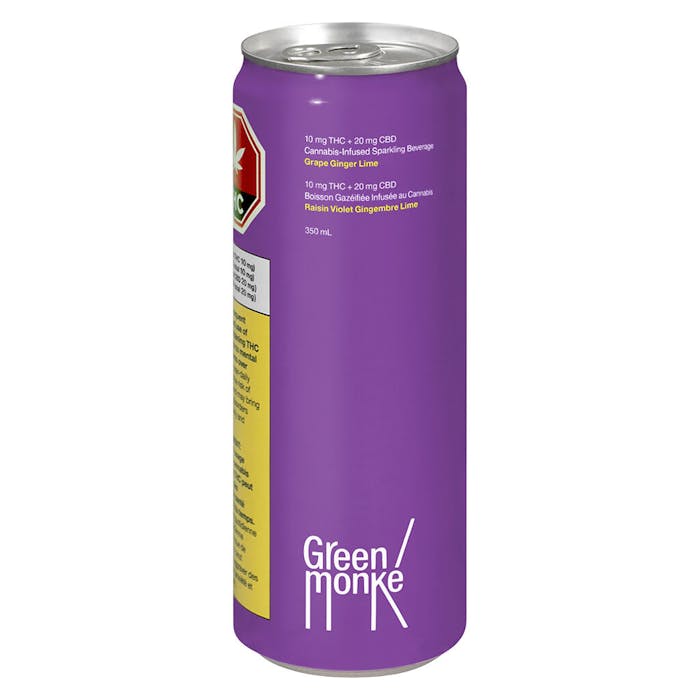 A new Green Monké flavour with a 2:1 ratio of CBD to THC, this drink contains 20 mg of CBD and 10 mg of THC. Pour this purple jungle juice into a cup full of ice and serve with a slice of lime. A new Green Monké flavour with a nostalgic flavour. With a 2:1 ratio of CBD to THC, this drink contains 20 mg of CBD and 10 mg of THC. Now made in a recyclable printed can. Pour this purple jungle juice into a cup full of ice and serve with a slice of lime. Made without animal products or gluten.