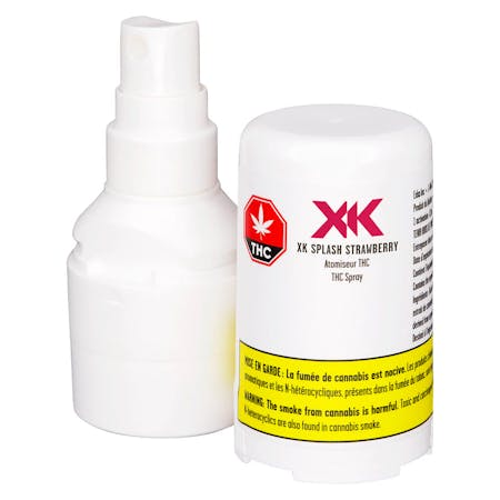 Each XK Splash Strawberry spray contains a minimum of 30 activations of 10 mg of THC. XK Splash Strawberry is part of a line of ultra concentrated sprays that offer high concentrated THC oil with a strawberry flavour profile. Each unit of XK Splash contains minimum 30 activations of 10 mg of THC. Each activation produces micro-droplets that once applied under the tongue, offers a fast onset of action. This spray uses a concave base, which means that there is no dose left inside the bottle. The XK Splash Berry can be easily carried in a pocket or a purse. Its child protective package ensures safe use and is recyclable.