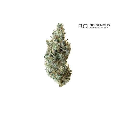 Tropic Thunder is a sativa-leaning strain bred from a Maui Wowie cross. It has bright green buds, accented by orange pistils and a frosty coating of trichomes. This strain is flavour-packed with intense aromas of tropical mango, pineapple, and a kick of citrus from its dominant terpenes of Limonene, Myrcene, and Beta-Caryophyllene. Produced on Stó:lo traditional territory, weaving Indigenous values with craft cultivation methods.