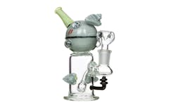 A bong or rig with a flat, flared bottom, resembling a beaker used in scientific labs. Pieces with a beaker base are very stable and unlikely to tip over, compared to round-based bongs, which can get knocked over and break more easily if accidentally bumped.