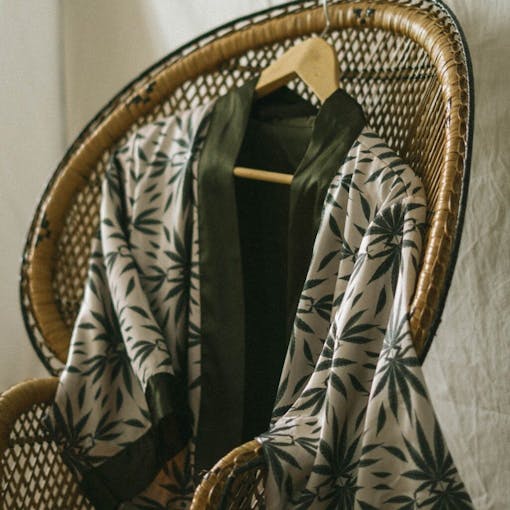 A fan favourite of women in weed is Allume’s infamous Botanique Robe, a reversible satin robe that features an elegant weed pattern, miles away from the classic weed pyjama pants.