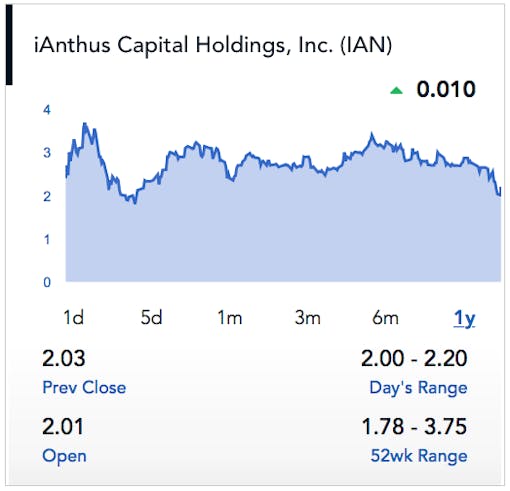iAnthus, which reports in U.S. dollars, had cash of $8.5m as of June 30th. The company has 34.35m shares outstanding, including the shares to be issued for the New York acquisition, and a fully-diluted share-count of 49.81m. Excluding out of the money securities leaves about 37.5m. With a price of C$2.03 on 10/20, the market cap is about C$76m. The company is in the middle of a capital raise (no details available) and last raised C$20m in February by issuing a convertible note and previously raised C$21.5m selling units at C$2.10 last November that included warrants at C$3.10.