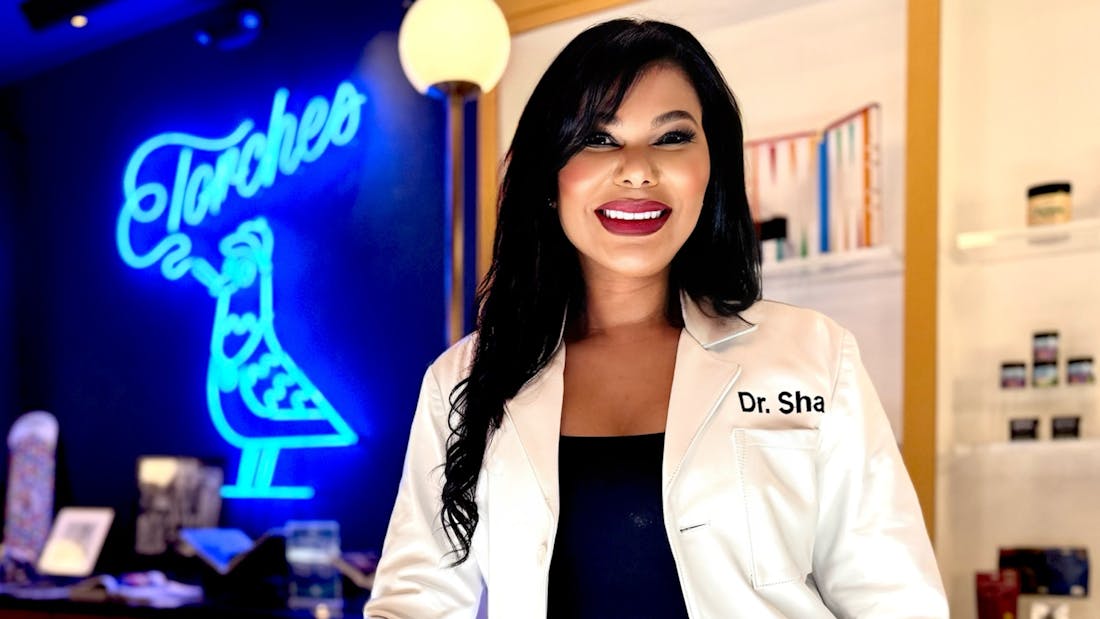 The first sale took place at Torches, between Dr. Pierre-Kovler, and Olleigh Barrett, a Social & Economic Equity applicant awaiting her license from the state. Barrett purchased a 3.5 gram eighth jar of TSA’s Jet Lag strain at Torches by Polanco Brothers dispensary in Manhattan. Dr. Pierre-Kovler donned a leather lab coat by Alhassan Toure to celebrate her journey from the lab to legal dispensary shelves.