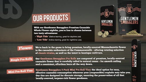 The Gentlemen’s approach includes products that simplify the experience for the East Coast’s less seasoned smokers. Their staple offerings include a “High Tide” sativa-leaning flower for daytime use along with a “Low Tide” indica-leaning cultivar intended for nighttime use. There’s also a hybrid option, the “Mid Tide” line, for tweeners.