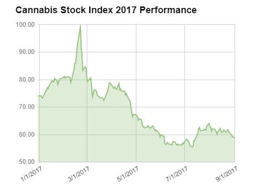 The OTC sector can be quite volatile. My proprietary Cannabis Stock Index, which which is rebalanced each quarter and currently tracks 50 stocks that meet certain liquidity and price criteria, went on a rocket ride in 2014 when Colorado opened its doors for adult-use cannabis sales. The Index rose seven-fold in ten weeks to begin the year, only to come crashing back down. In 2017, after an initial 35% rally, it lost about 44% of its value, leaving it down about 20% so far:
