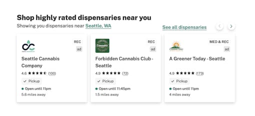 Yup, you can order weed on Uber Eats in Toronto, Canada, and Leafly flows the order to advertising stores in the area. We started with three stores and are up to 72. Toronto rivals California for weed delivery frequency. That’s wild.