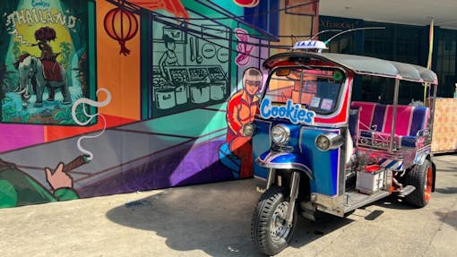 Classic US trains like Jack Herer and Strawberry Cough are available in Thailand, along with landrace strains like the original Thai aka Thai Stick. Local smokers on the ground told Leafly there’s also a surplus of bootleg American brands like Cookies being sold in counterfeit bags. As for Cookies merch and cannabis sold in the nation’s gray market dispensaries, the company doesn’t mind bootleggers. They chalk the infringement up to free brand awareness.