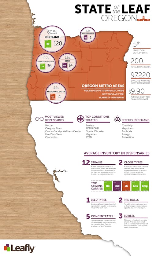 Check out the infographic below for Oregon’s top dispensaries, top strains, and more (click on the infographic to view a larger version)!