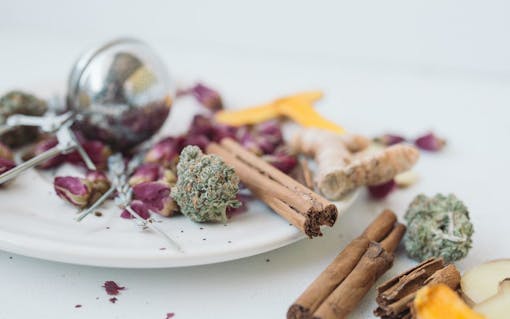 We’ve got two effective and tasty weed tea recipes to share, and two in-a-pinch alternatives if you’re in a weed bind. The recipe for cannabis tea with rose and chamomile can be adapted a million and one ways—simply use your tea leaf or flower of choice along with ground cannabis (or stems!) and steep your worries away. The cannabis-infused golden milk with coconut oil has ample anti-inflammatory and antioxidant benefits—the most luxurious way to end the night.