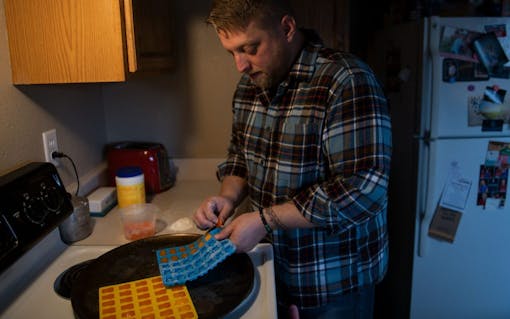 It took Burgess six months to convince his family that he should try medical marijuana. When they finally agreed, his wife couldn’t get off work so his mother and his two aunts drove him the nine hours to Denver. They purchased an eighth of an ounce each, the maximum purchase allowed at the time for out-of-state customers.