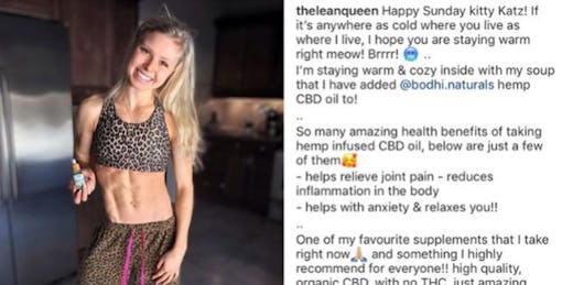 Huffington Post on Tuesday broke the story the Instagram photo and caption posted by the fitness buff on Sunday. “So many amazing health benefits of hemp infused CBD oil,” Kyla Ford posted on Instagram under the moniker @theleanqueen. She also added that she puts the product in her soup. The post was later removed some time after Huffpost published their article.