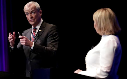 Leading NJ gubernatorial candidate Phil Murphy, seen here debating opponent Kim Guadagno earlier this month, wants to legalize cannabis. Guadagno does not.
