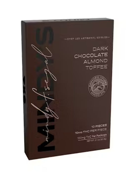 | Mindy’s Edibles | Dark Chocolate Almond Toffee | 10 | 10mg | Available at a dispensary near you → |