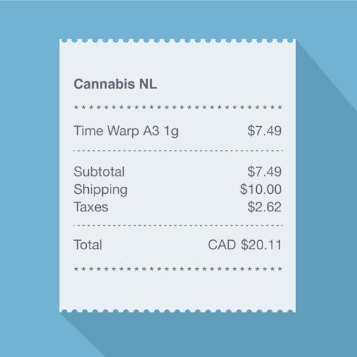 While Cannabis NL promises that a dozen strains of Eve & Co. Cannabis are coming soon at a price of $6.89 per gram, the cheapest cannabis on The Rock is currently a sativa dominant hybrid called Time Warp A3 from Emerald Health Therapeutic. Add another 15% for HST and $10 for shipping when ordering online.