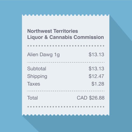 Aphria’s Alien Dawg, a cross between Chemdawg and Alien Technology, is not only the cheapest cannabis from Cannabis Yukon, but in all of the Territories. Even still, the indica strain for $10.09 (taxes in!) will run you more than double after delivery.