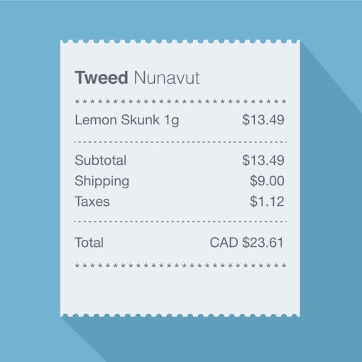 Available in Nunavut exclusively from Tweed’s online store, Lemon Skunk Bud is the most budget-friendly option on the menu. Priced at $13.49 per gram plus $9 shipping and 5% GST, expect your minimum spend to total more than a twenty.