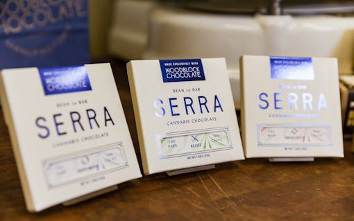 “Who is eating weed chocolate now? All kinds of people!” Charley muses aloud when I meet him. Individually, Holly is the product development director for Serra, while Charley and his wife Jessica co-founded Woodblock. In this partnership, Charley is responsible for the chocolate side of things; Holly then takes Woodblock’s chocolate and infuses it at Serra’s lab. Inside the lab, the dispensary’s flower is grown, turned into oil, and then added to the chocolate bars.