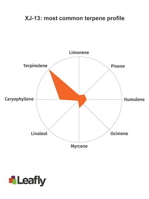 Lastly, XJ-13 is a sativa-dominant cross of Jack Herer and G13 Haze. It exhibits the same terpene profile as Jack Herer with a little less pinene. Flavor-wise, XJ-13 holds a strong citrus aroma accented by notes of earthy pine. Effects-wise, XJ-13 follows the same path as every aforementioned strain by providing happy and uplifted effects, great for creative activities.