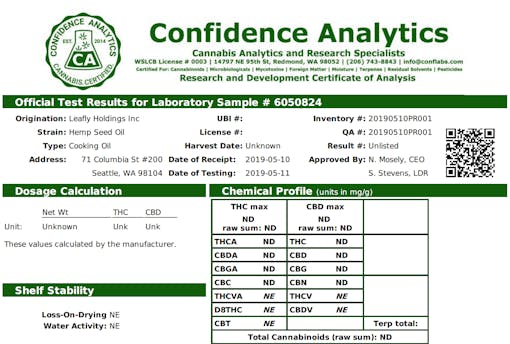 We asked the experts at Confidence Analytics, a state-licensed cannabis testing lab in Seattle, to scrutinize the product. They put it through the same tests that state-licensed cannabis products are required to undergo.
