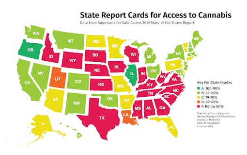 That contrasts with the frustrating stasis happening in Texas and throughout the Southeast—all of which got Fs. Guam got a C, by the way.Looking for Medical Cannabis?