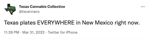 Just remember: Crossing a state line with cannabis is illegal—heck, just being in Texas with cannabis is illegal—and the Texas Highway Patrol is highly aware of what’s going on in New Mexico.