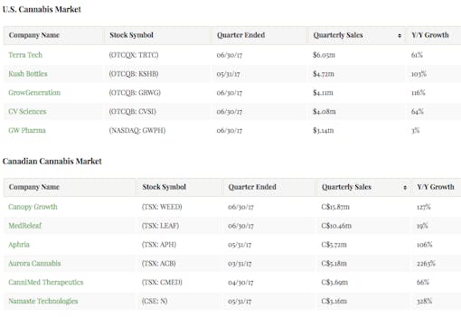 He created a Public Cannabis Company Revenue Tracker to watch the top revenue-producing cannabis stocks with sales of more than $2.5 million per quarter. Here’s his latest tracker: